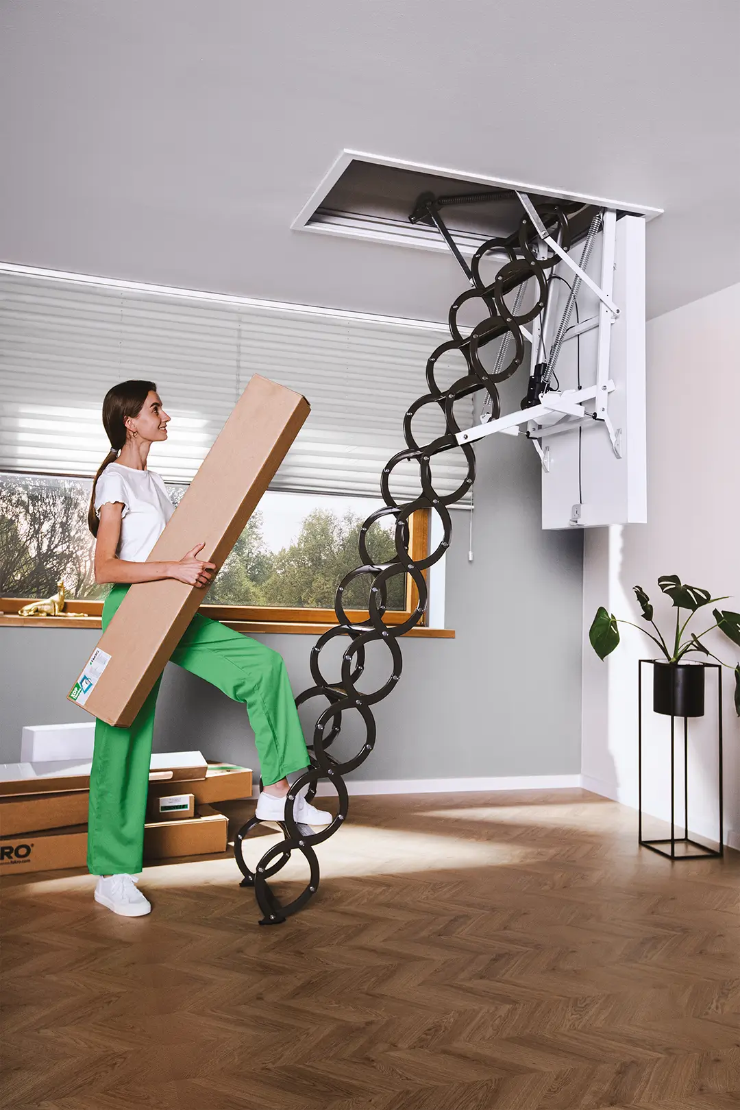 Jaunās paaudzes FAKRO GREENSTEP bēniņu kāpnes ir radītas saskaņā ar GO GREEN filozofiju, kas apvieno komfortu un dizainu, bet rūpes par vidi liek pirmajā vietā.