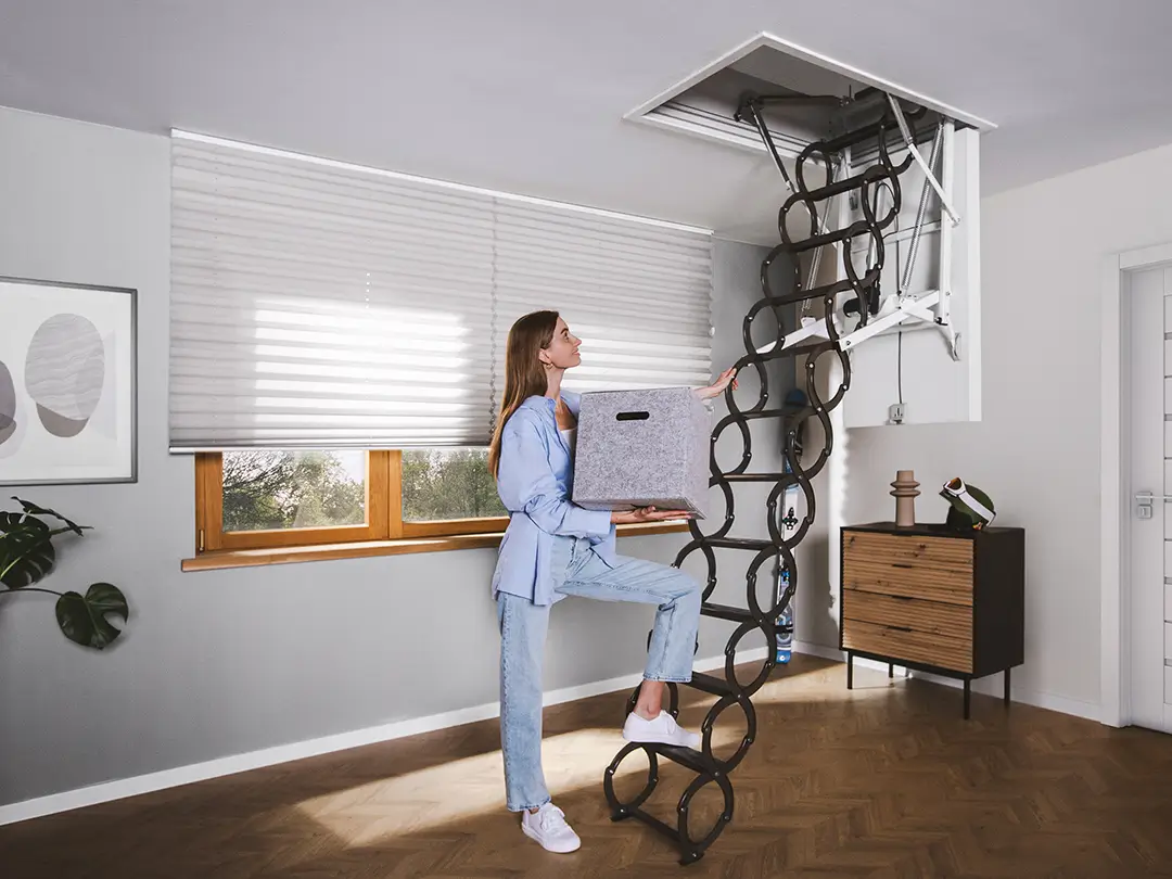 Iespējams izmantot bēniņu kāpņu piederumus
